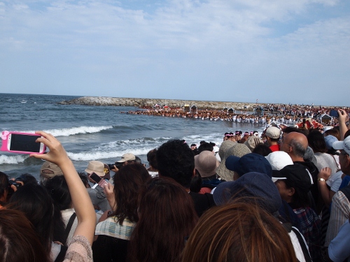 御輿が海に入っている様子が壮観と、何度も噂を聞き、