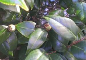 久しぶりに事務所にくると、入口近くのつばきがつぼみをつけていましたよ。