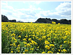 「ここっていすみだよね?」 その広さに、 まるで北海道に来たのではないかと錯覚してしまいそう。 広大な菜の花畑と牧草地、そして牛舎も車庫も何から何まで大きく、スケールがちがいます! この牧場の広さは23町歩(23ヘクタール)、広さは東京ドームの約5個分なのです。